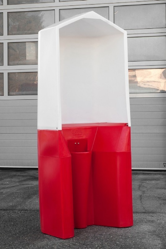 Beim Toiletten-Modell MEN POINT können bis zu vier männliche Personen gleichzeitig das Urinal nutzen, wobei die hohen Sichtschutzwände für eine angemessene Privatsphäre sorgen. Es eignet sich für größere Veranstaltungen und kann durch den integrierten Abwassertank überall aufgestellt werden, wo es benötigt wird.