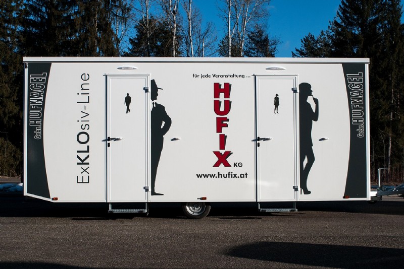 Mit dem neuen HUFIX Toilettenanhänger FTT610 ExKLOsiv unserer Gebrüder Hufnagel Kanal-Kontroll-Service GmbH in 9241 Wernberg in Kärnten bieten wir Ihnen eine flexible, komfortable und moderne Lösung für die WC-Anlagen Ihrer Veranstaltung.