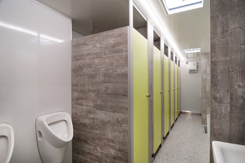 Fünf Toilettenkabinen